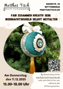 📞 Anmeldung unter marthastisch@posteo.de oder persönlich bei uns während der Öffnungszeiten.